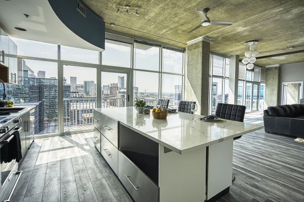 In the living space, the floor-to-ceiling window wall brings in an abundance of the natural daylight Colorado gets 300 days of the year. Highlights of this open, spacious area include a wet bar that is perfect for entertaining, a cozy media setup for movie nights, and an updated kitchen for the gourmet chef. Updated finishes throughout the property mean it's ready for move-in! This is truly a once in a lifetime opportunity not found elsewhere in the Glasshouse.