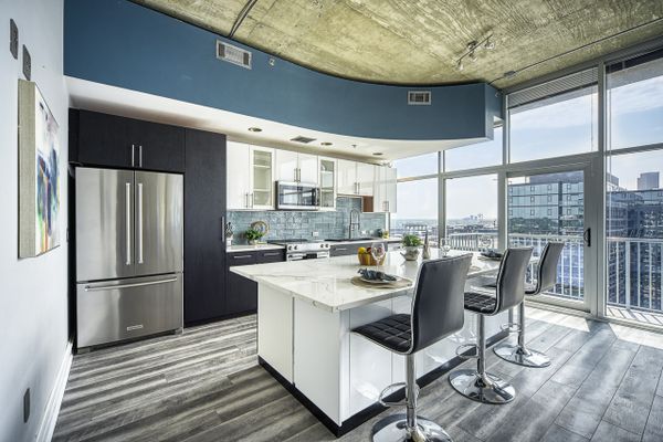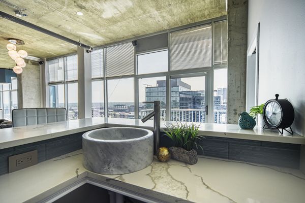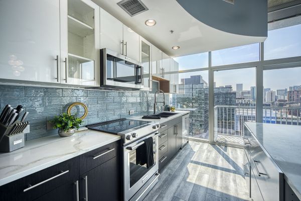 Step into this one of a kind corner unit situated in the exclusive and highly desirable Glasshouse. Located on the 21st floor, this rare double unit features breathtaking views of downtown Denver and the Rocky Mountains. Enter the grand Primary Retreat, where you will find the downtown views continued in a 180° panorama. A luxurious Ensuite Bathroom completes Retreat with a double spa shower. The custom-built Primary Suite Closet features vaulted ceilings to maximize capacity for the biggest fashionphiles.